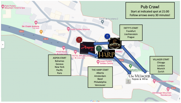 Exciting news for Monday’s Pub Crawl in Soldeu! Here’s how it works: